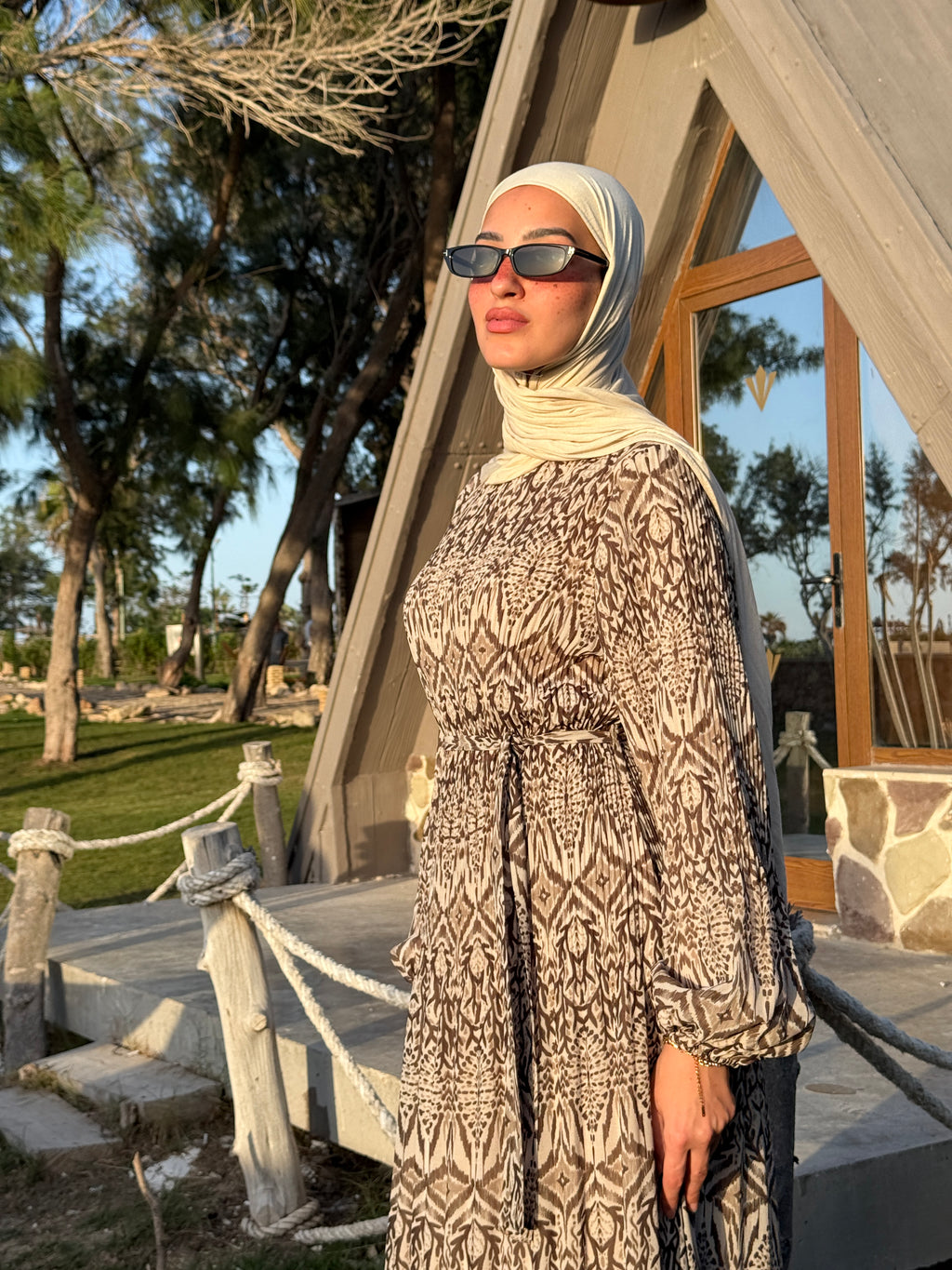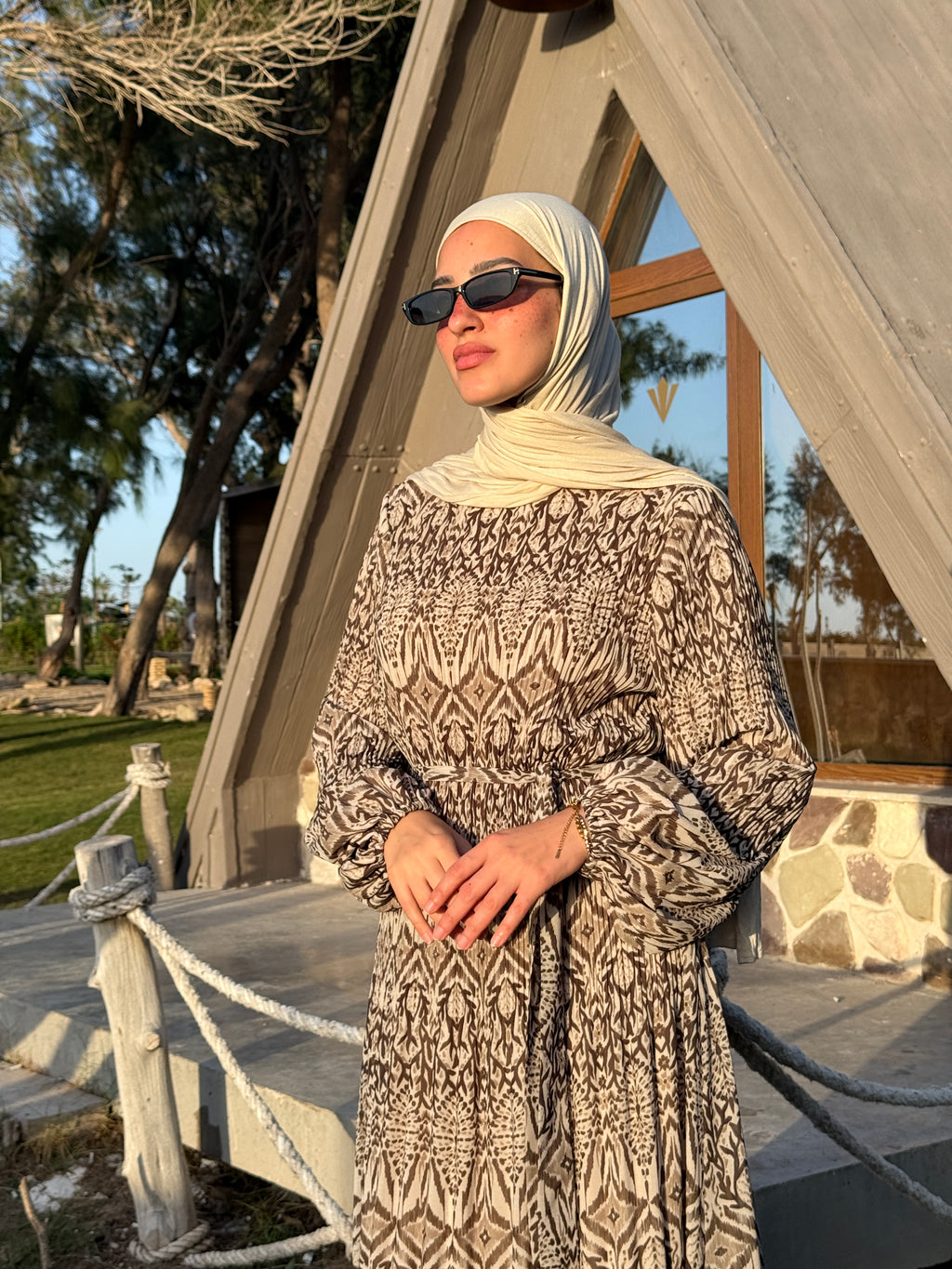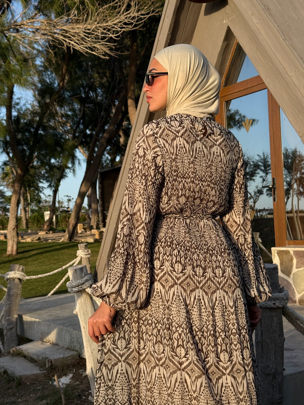 Chiffon Accordion Dress - Brown