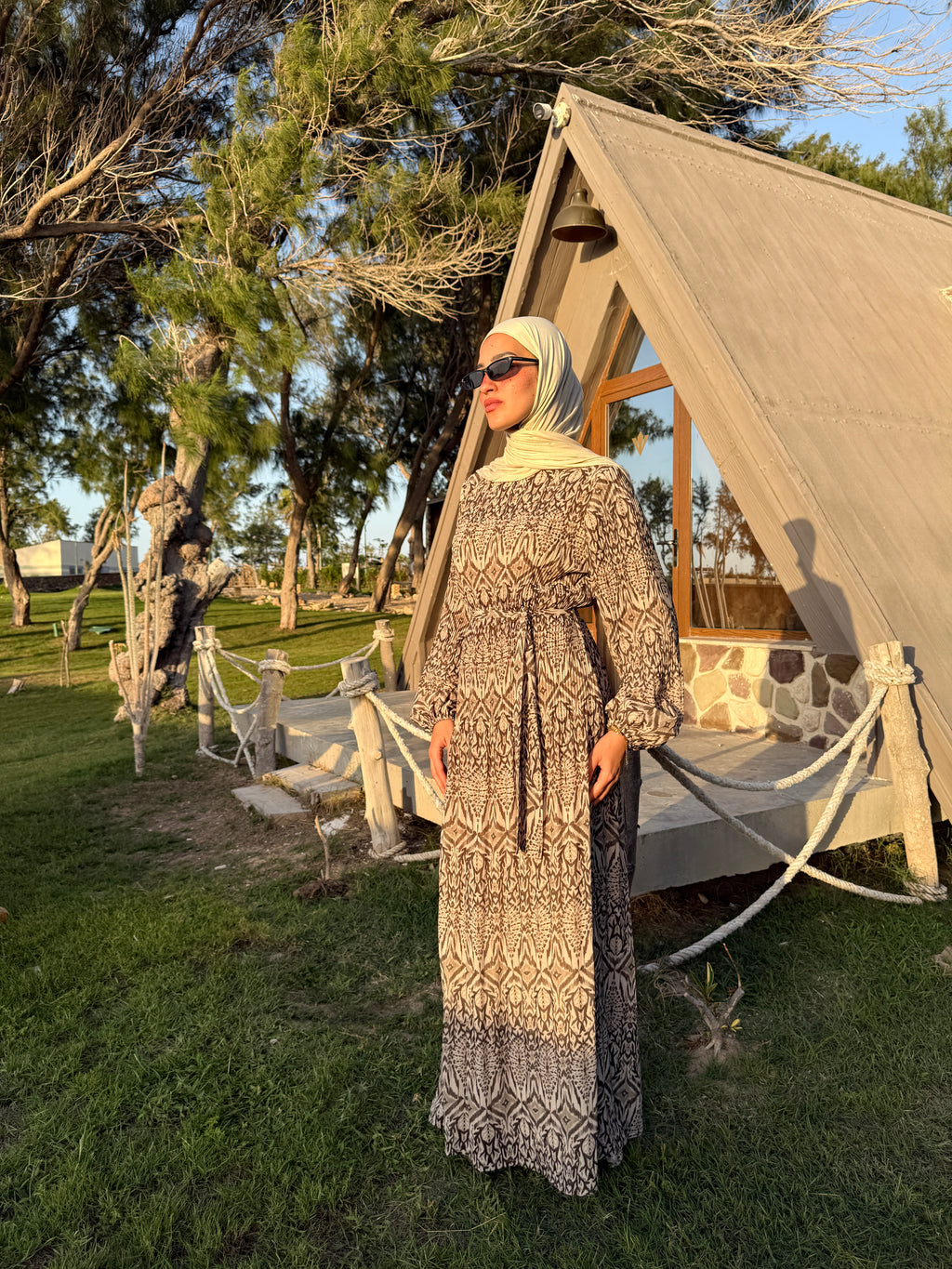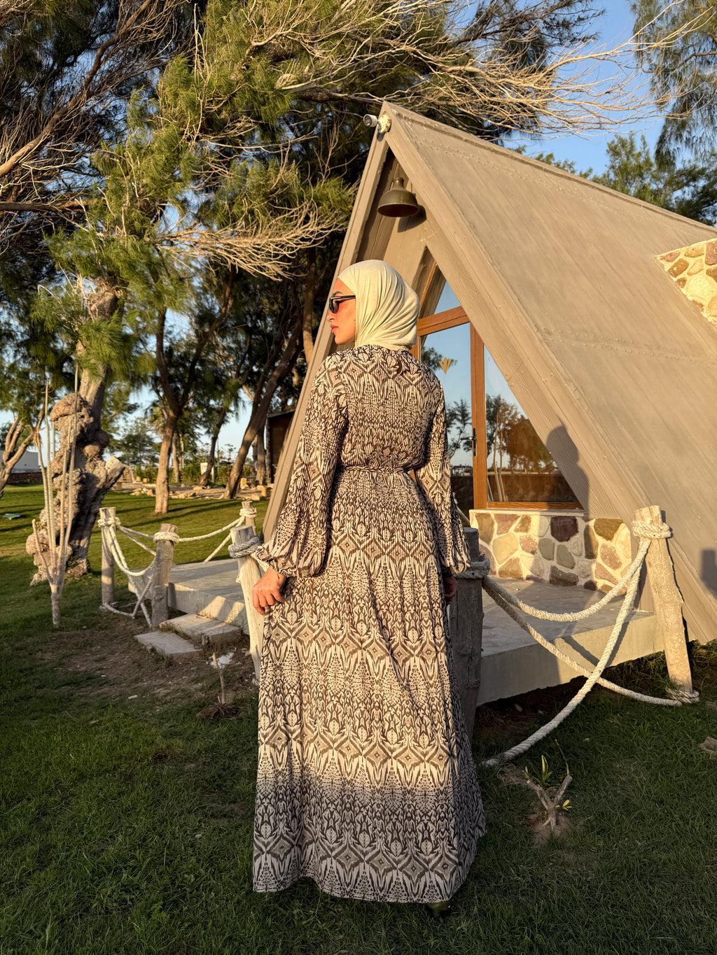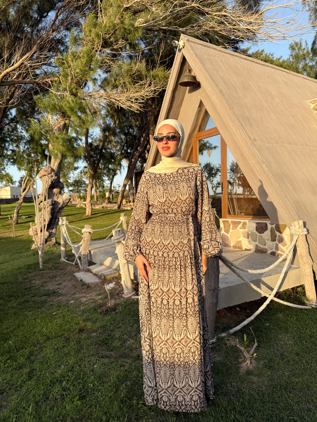 Chiffon Accordion Dress - Brown