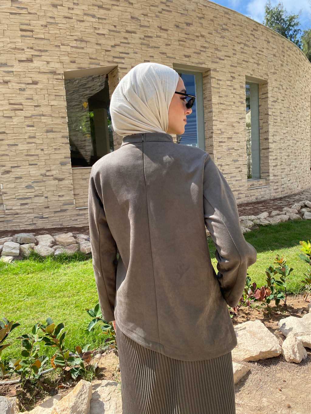 Suede Blouse With Buckle - Olive