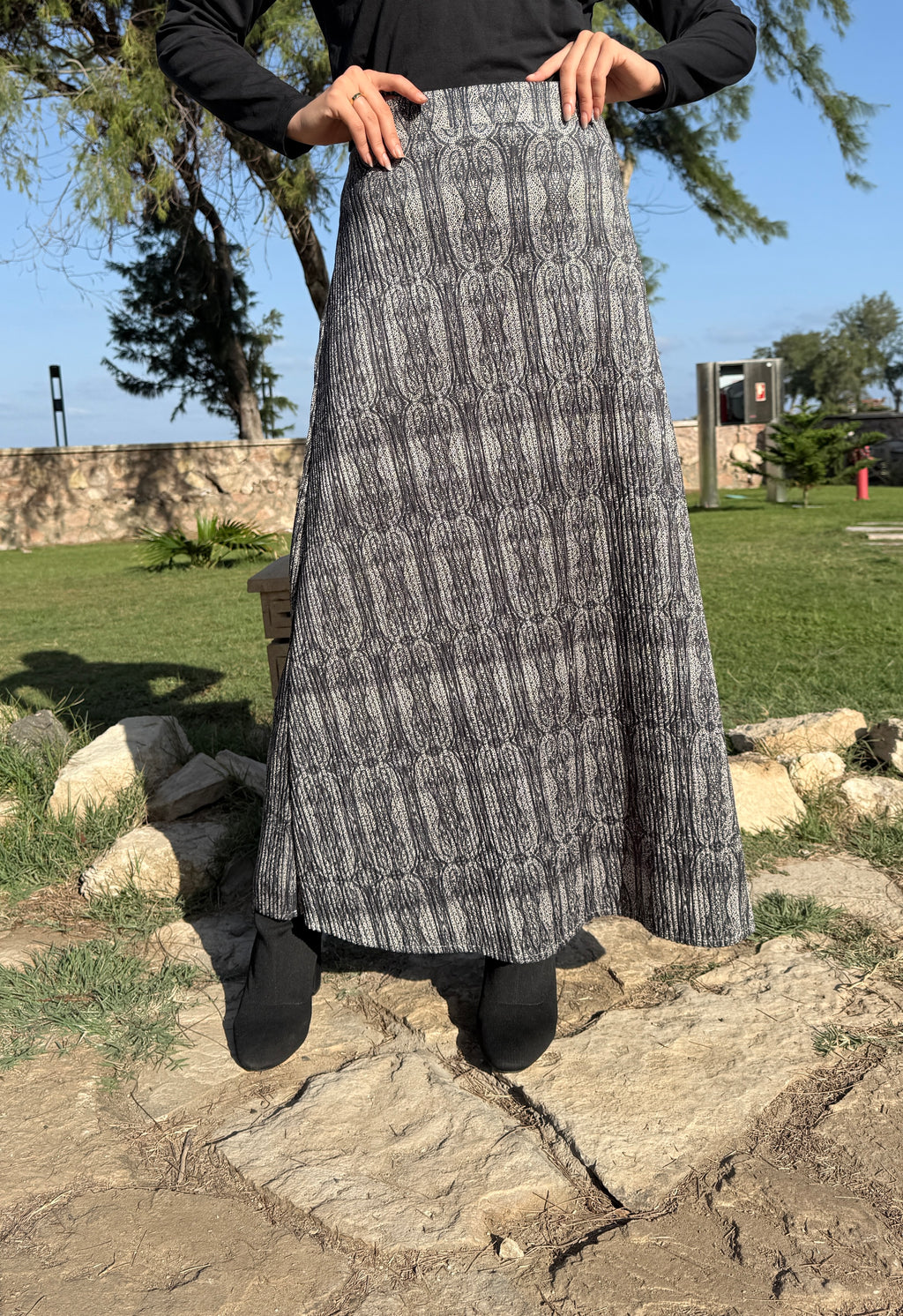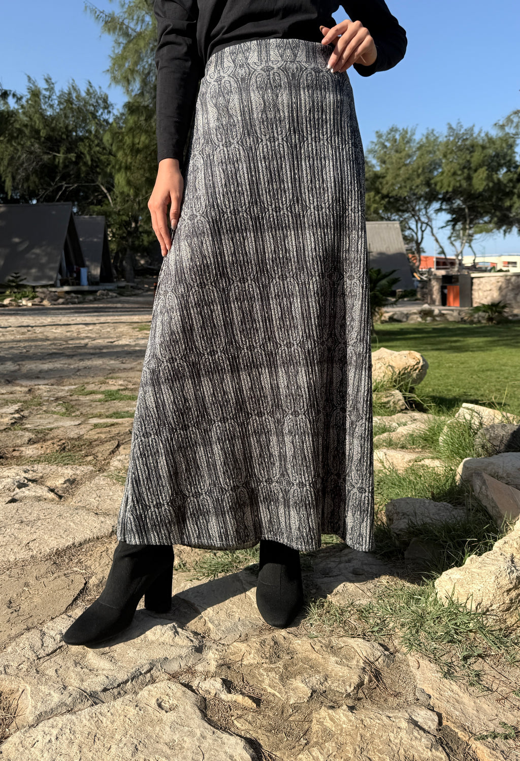 Suede Printed Skirt - Black